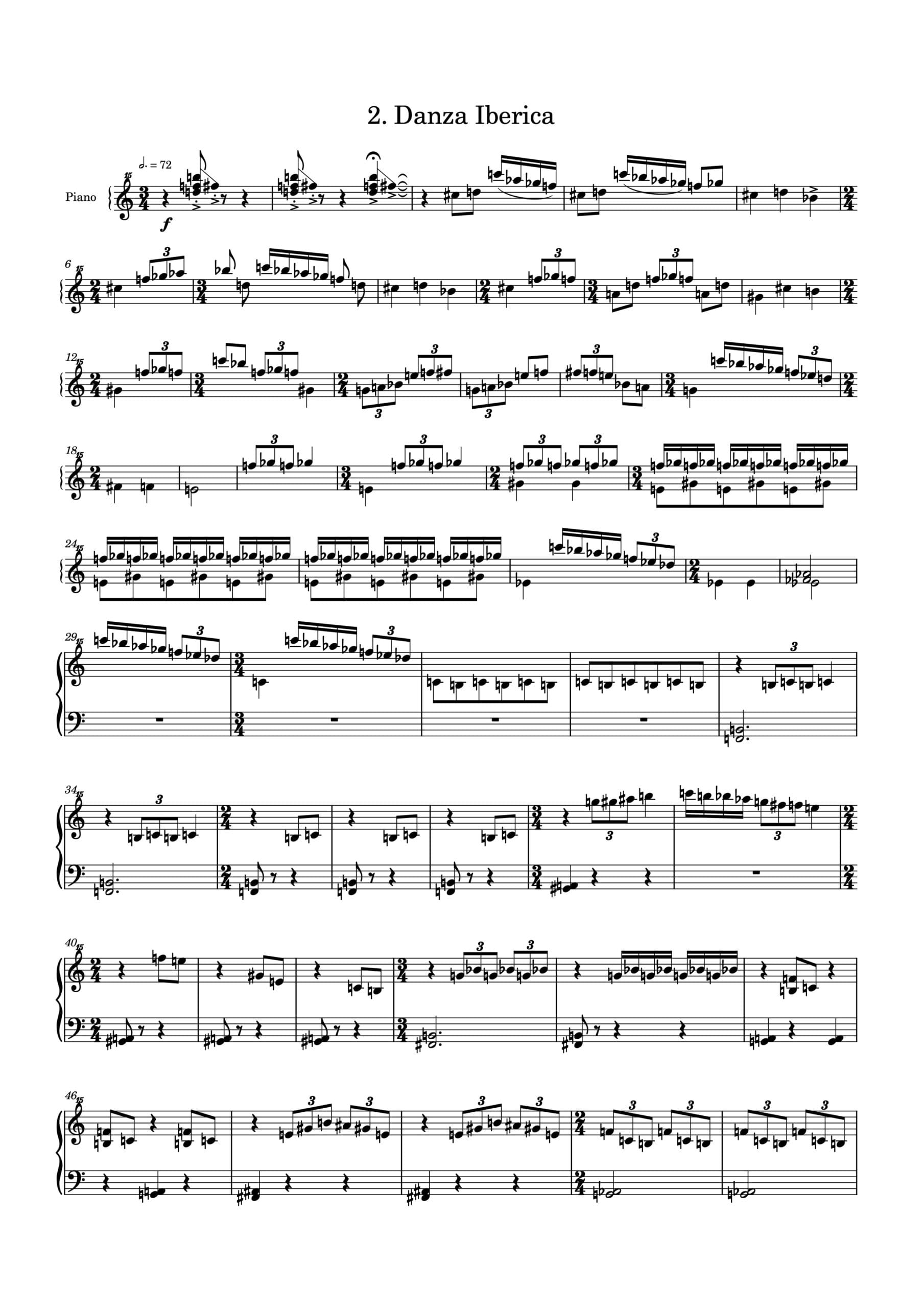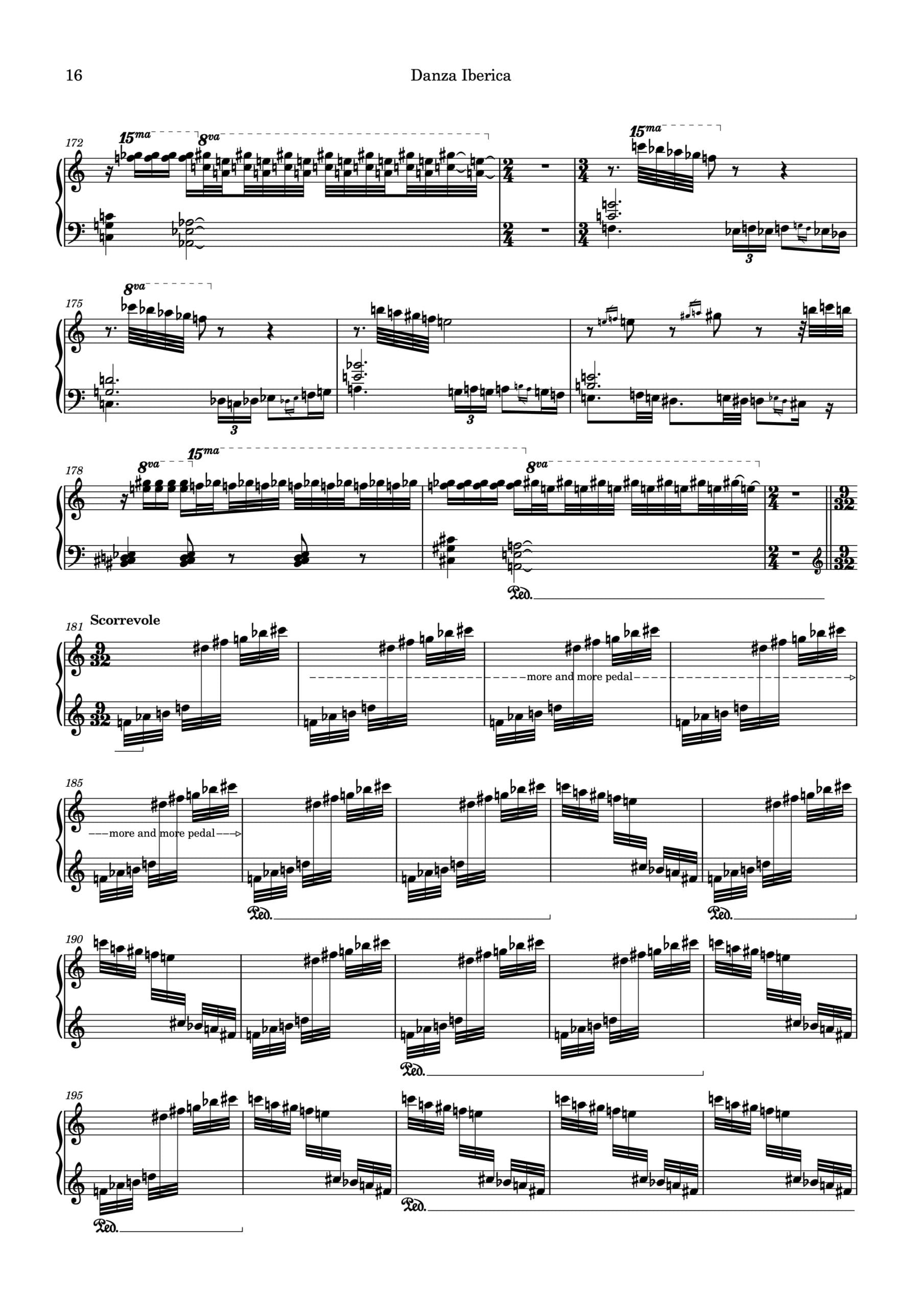 Une seconde section se réfère à la Danza Ibérica de Joaquín Nin, intégrant un querío (lamentation) entre une autre escobilla et une espèce de toccata. Après un glas, la pièce se ferme sur une allusion envers La Farruca, une chanson traditionnelle, et se suspend à la manière d’un tablao qu’il fallait interrompre.