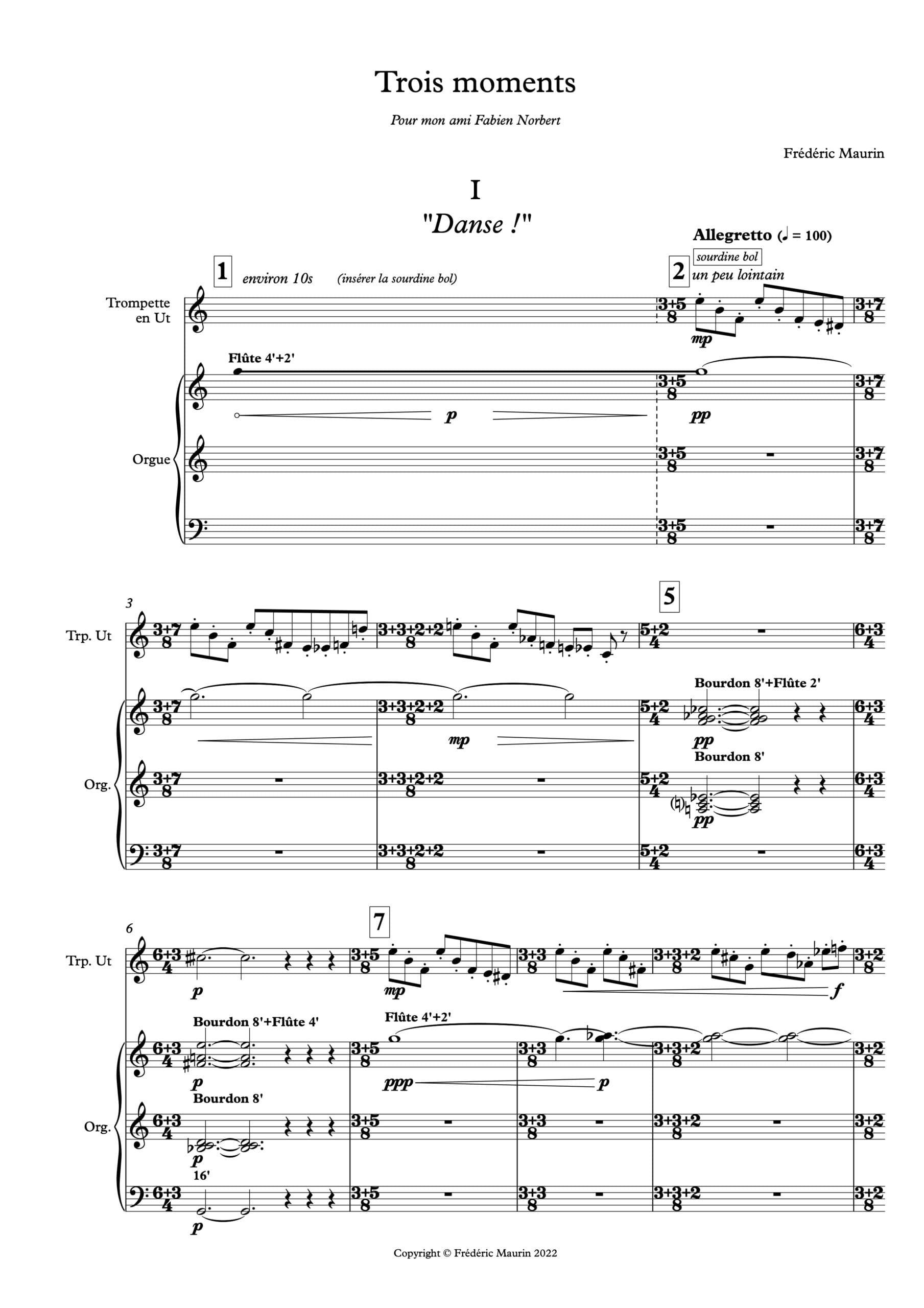 Frédéric MAURIN, Trois Moments pour orgue et Trompette en Ut