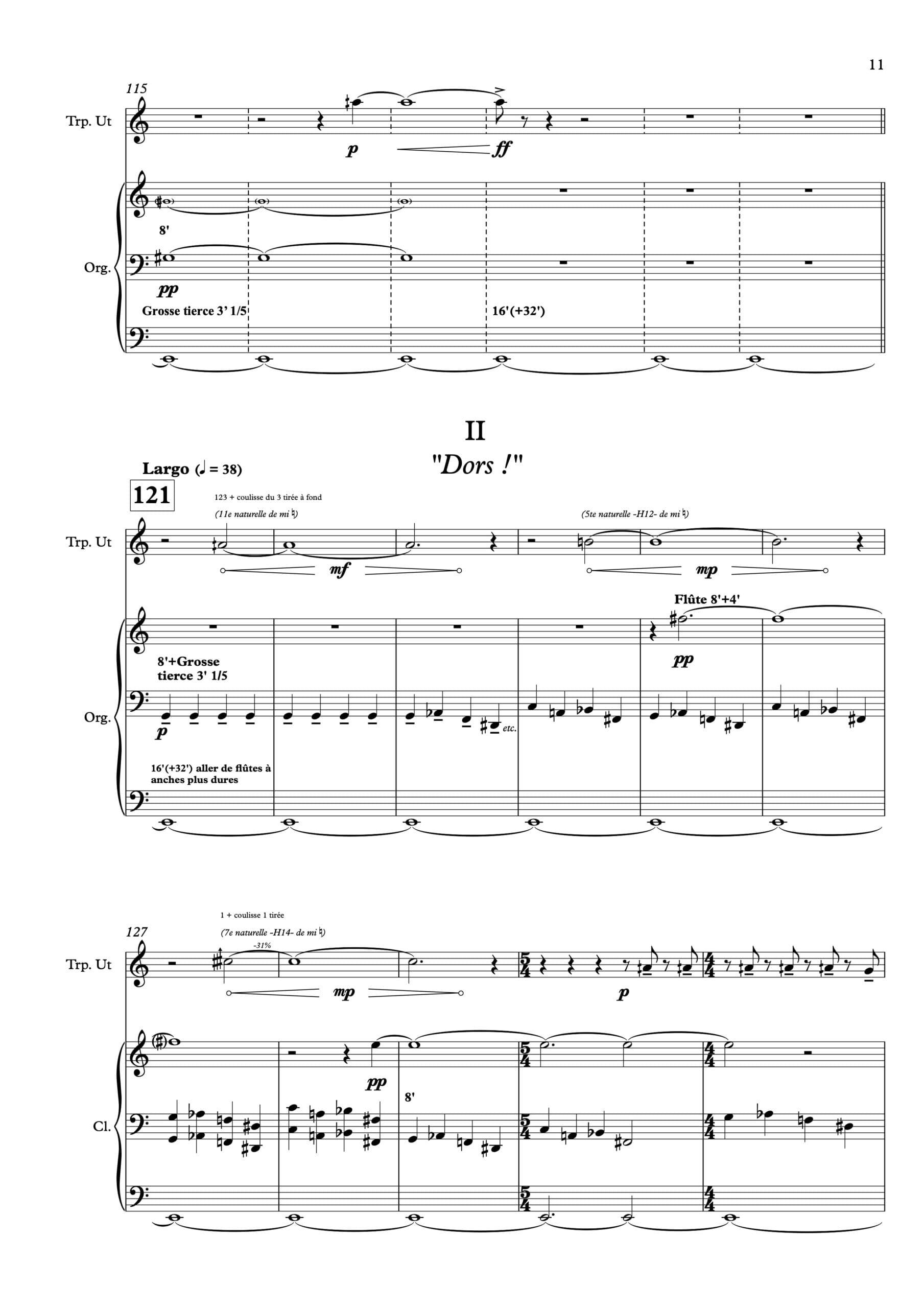 L’œuvre se déploie comme un triptyque — trois “moments” — qui explorent successivement différentes facettes du dialogue trompette/orgue.