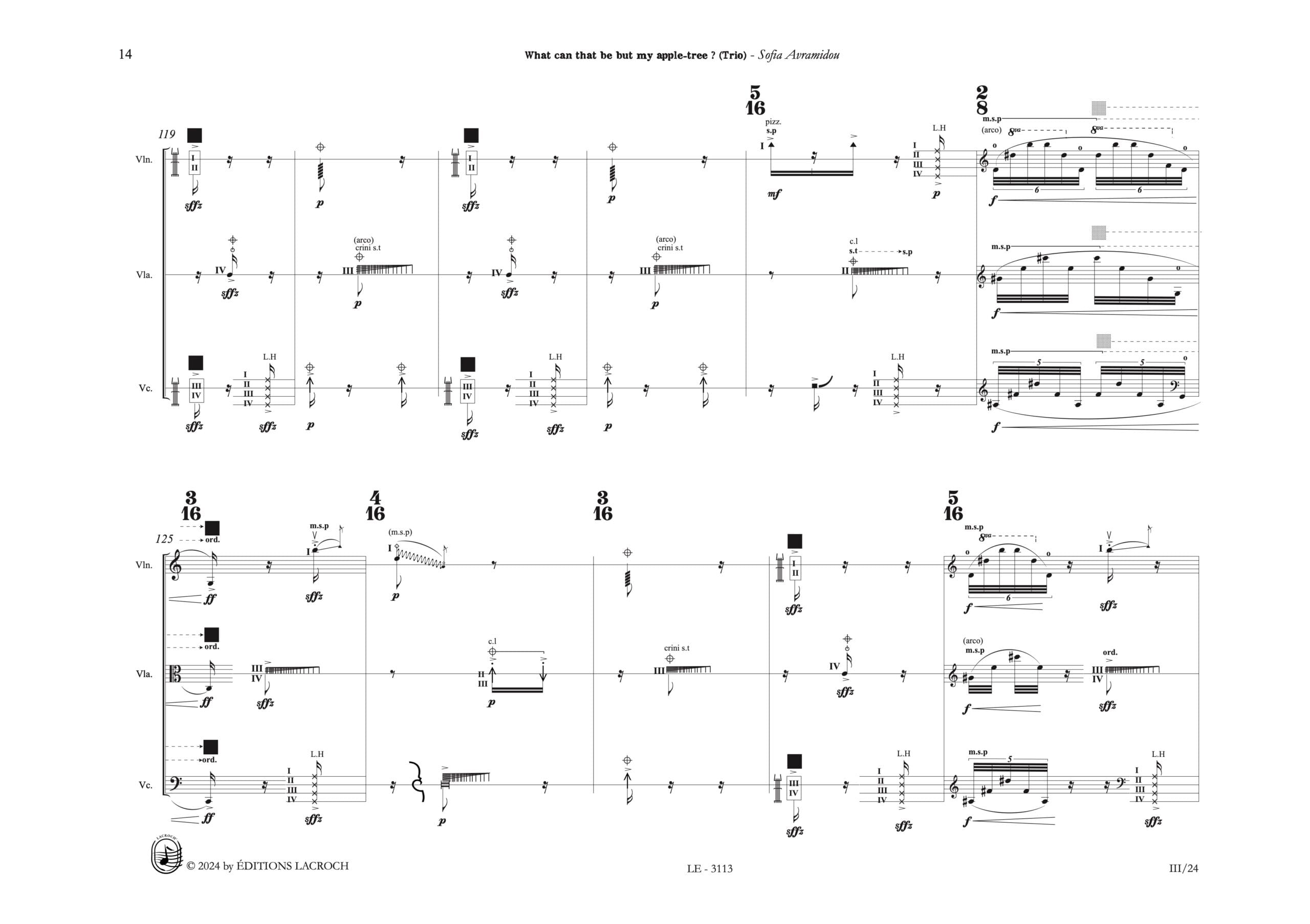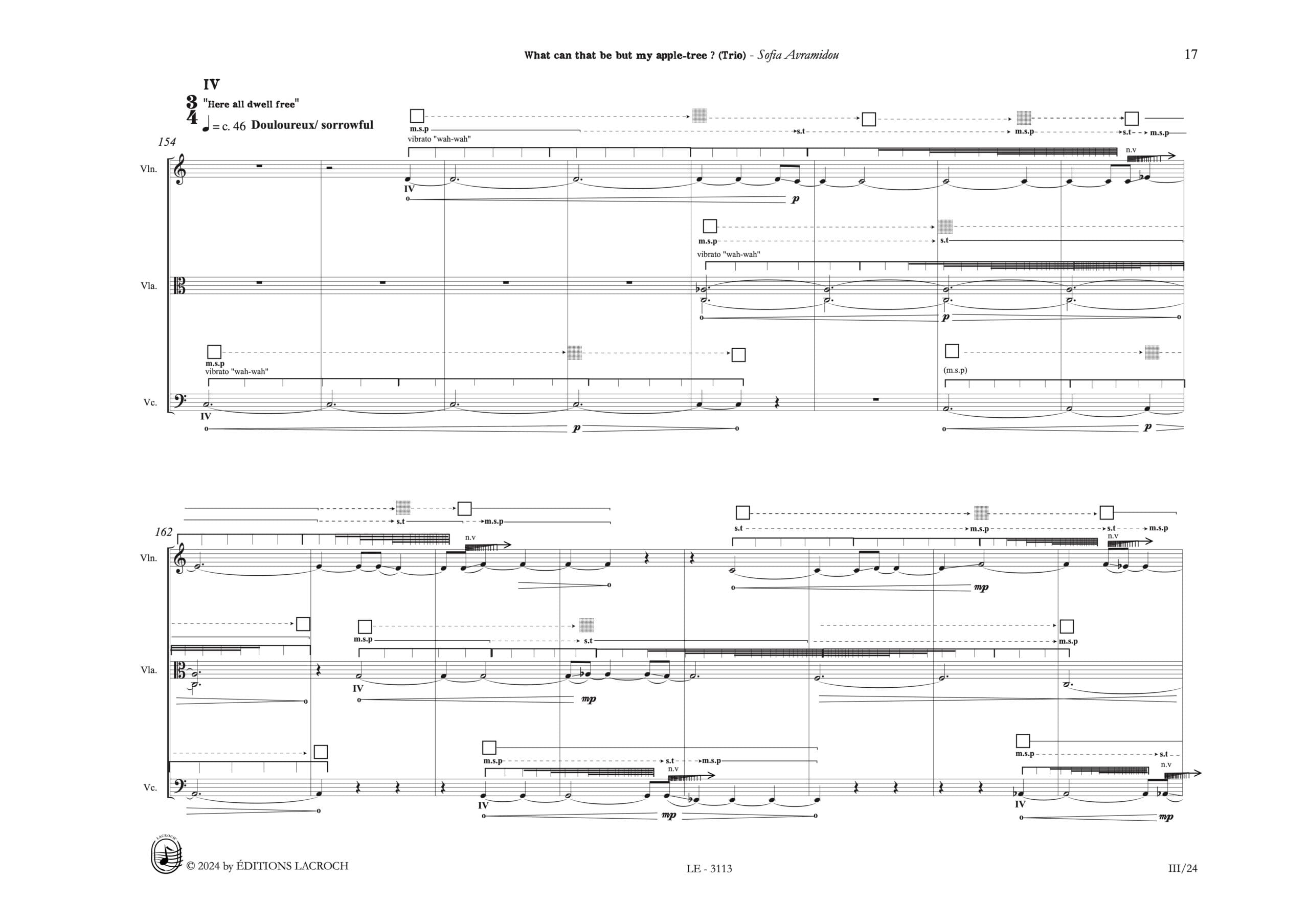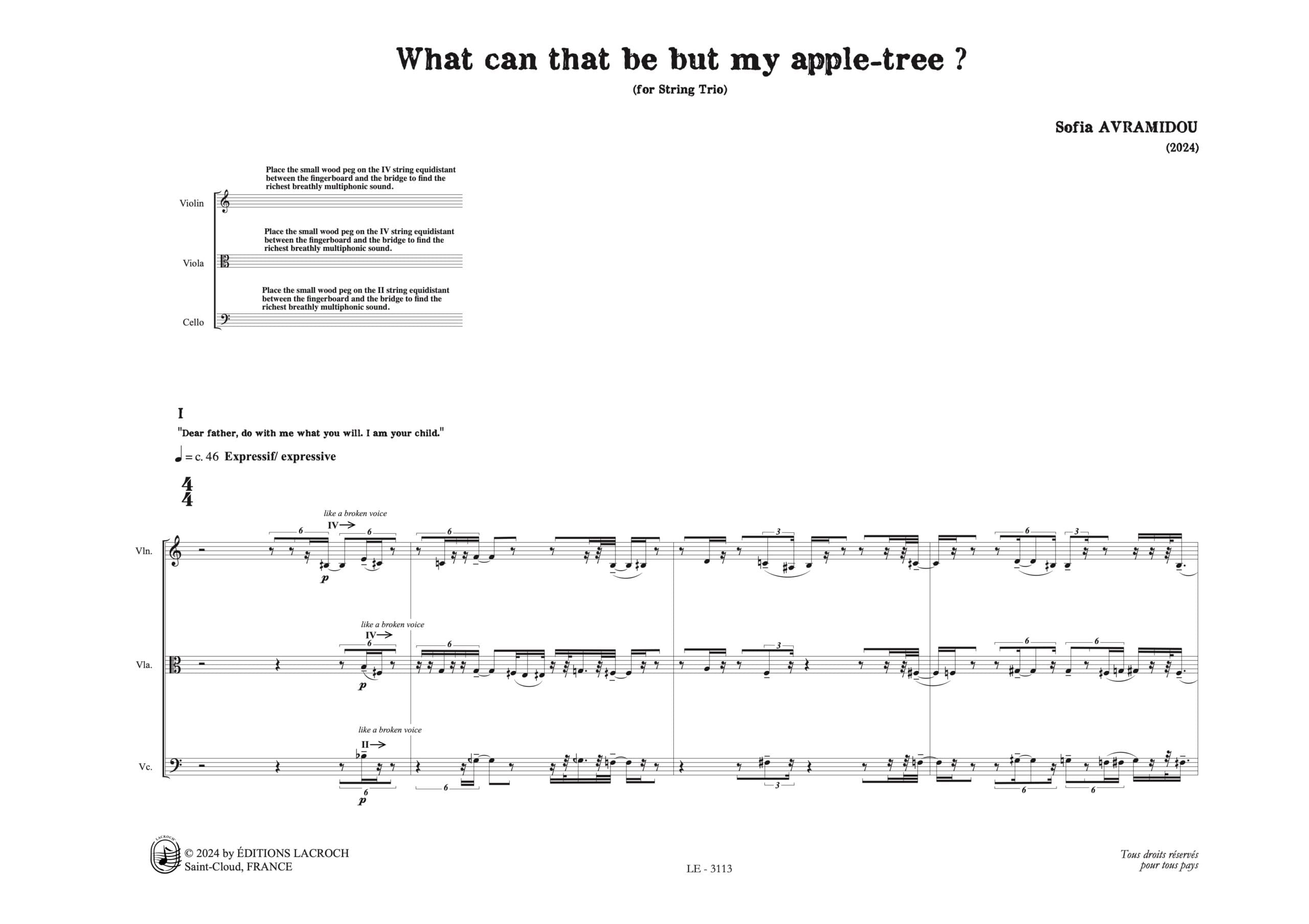 Sofia Avramidou a imaginé une suite de saynètes pour quatuor à cordes « What can that be but my apple-tree ? » inspirée du conte des frères Grimm, La jeune fille sans mains.