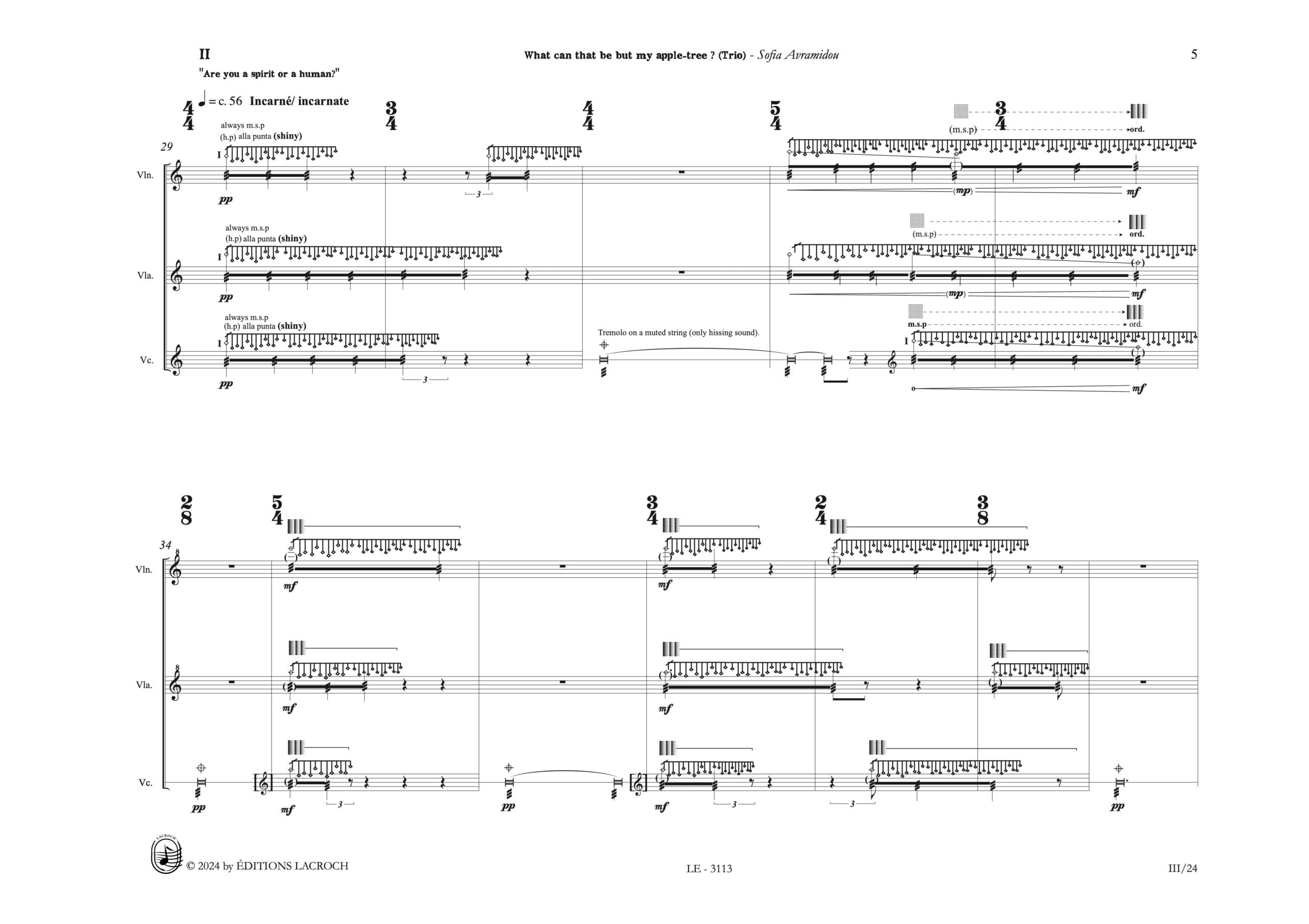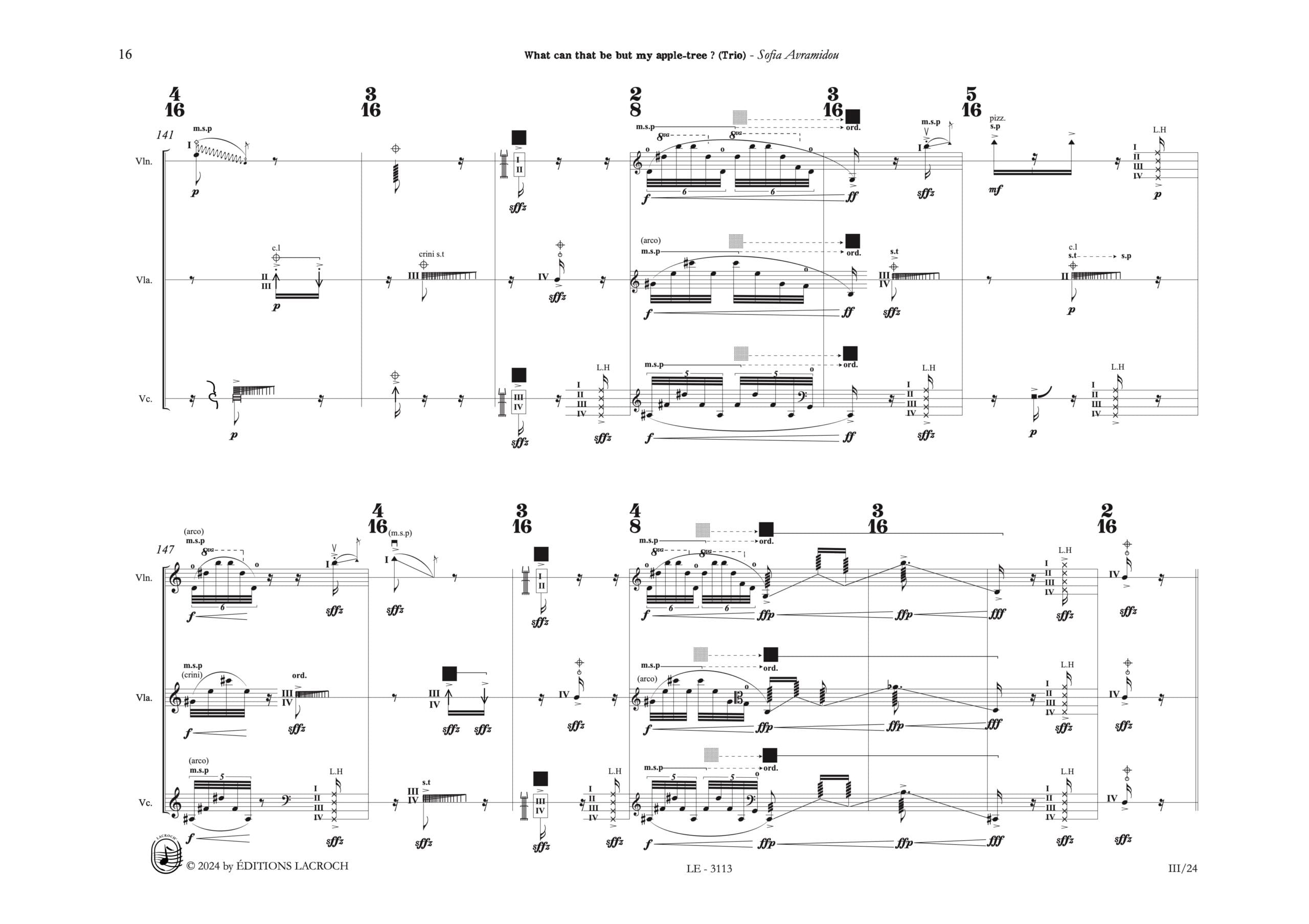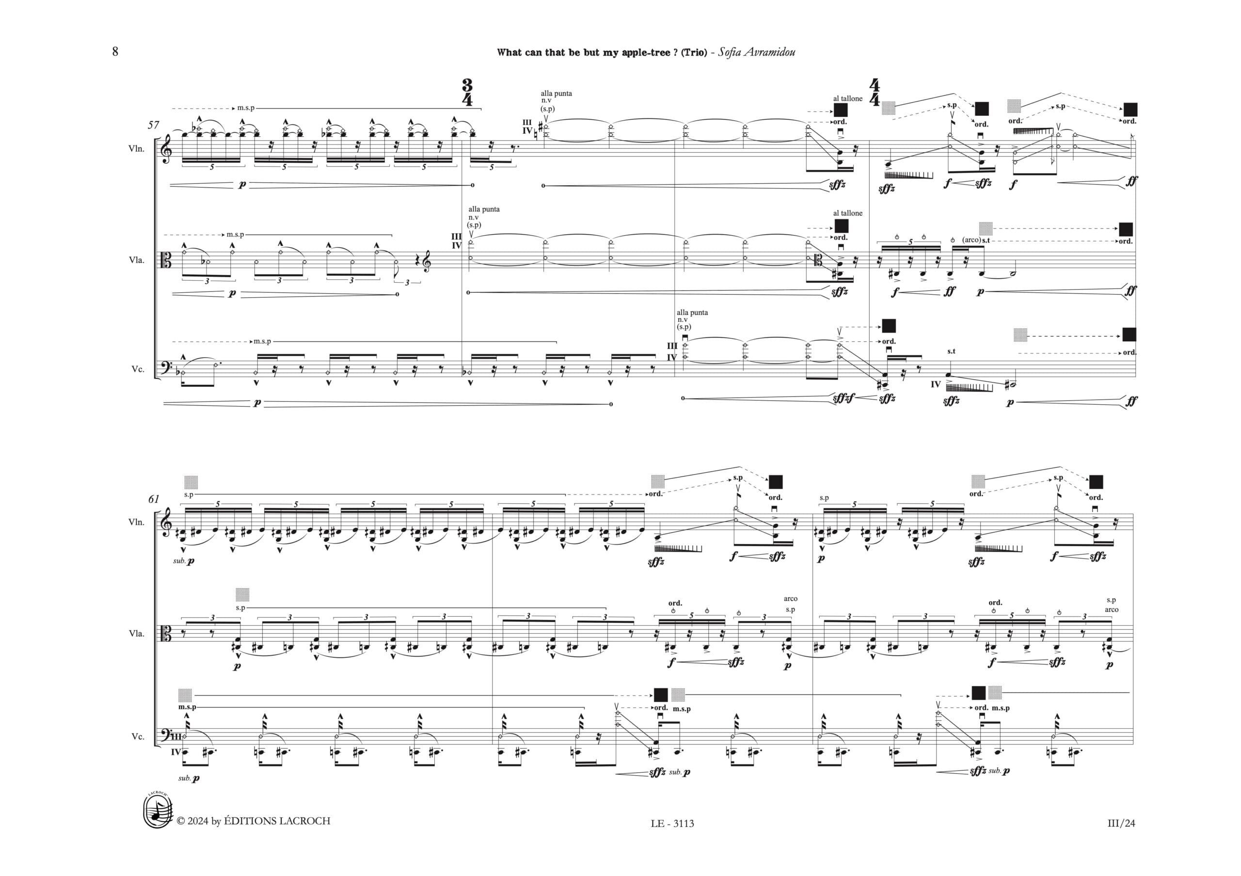 Sofia Avramidou a imaginé une suite de saynètes pour quatuor à cordes « What can that be but my apple-tree ? » inspirée du conte des frères Grimm, La jeune fille sans mains.